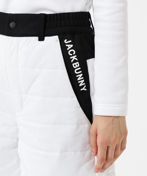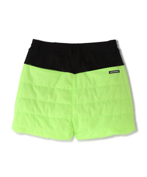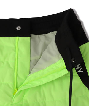 着膨れしにくい薄い中綿と防風機能の起毛カットソーをドッキングした、PEスムースラミネート中綿ショートパンツ。