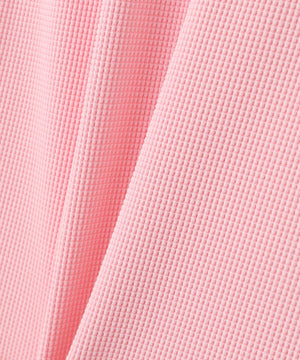 機能素材により遮熱性、UV機能、ストレッチ性、軽量を実現し、ワッフル生地特有のソフトな風合いと吸汗速乾性を持つ、ベタつきにくく、タフで型崩れしにくい素材感が特徴です。