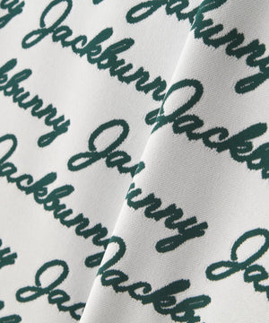 筆記体のJBロゴ総柄の中で、ソリッドのリブ襟や前立がポイントになった、配色使いが目を引くカジュアルなデザイン。