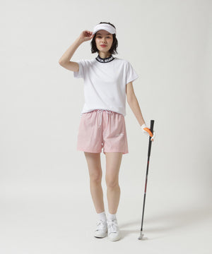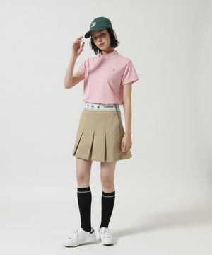 ロゴジャガードの襟元がスポーティーな印象を与える、一枚でサマ見えするモックネックカットソーです。