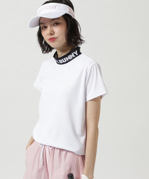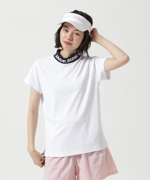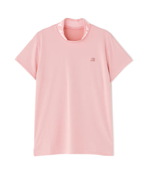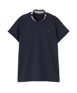 首元に入れたJBロゴがポイントになった、ロゴジャガード半袖モックネックカットソー。