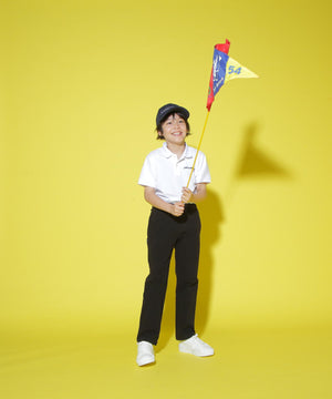 ゴルフの動きを想定して伸縮性の良い素材や、楽な履き心地が続くゴムウエストを採用。