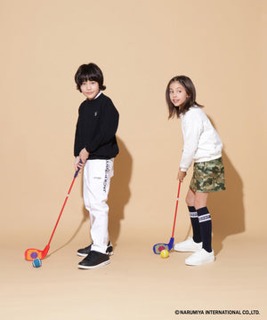 ジュニアブームを牽引したナルミヤの人気オリジナルキャラクターをコンビネーションさせた、エンジェルブルーコラボカモフラ柄スカート。