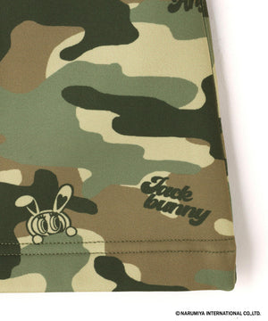 リバイバルブームをジャックバニー流に解釈して今に落とし込んだ、エンジェルブルーのメインキャラクターを効かせたカモフラ柄のスカートです。