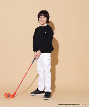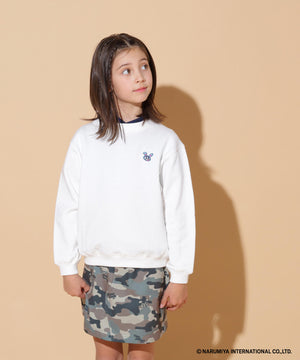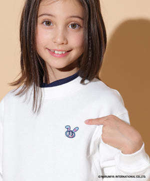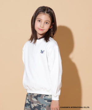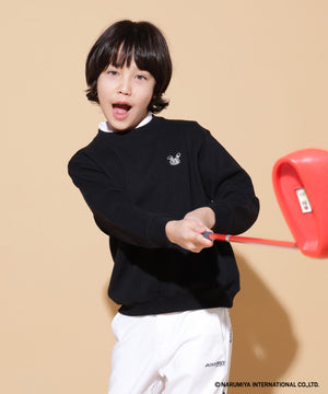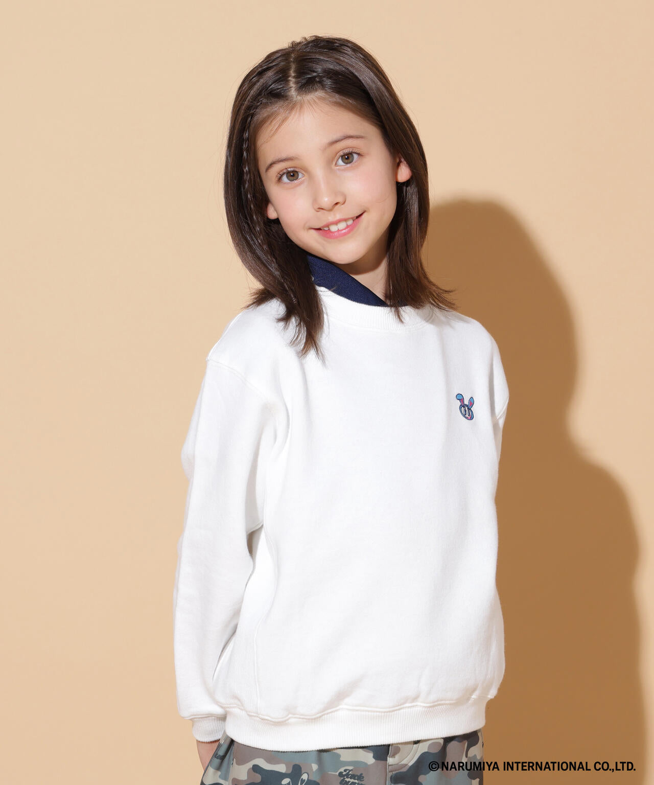 ジュニアブームを牽引したナルミヤの人気オリジナルキャラクターのワンポイントが目を引く、エンジェルブルーコラボ裏毛スウェットクルーネックプルオーバー。