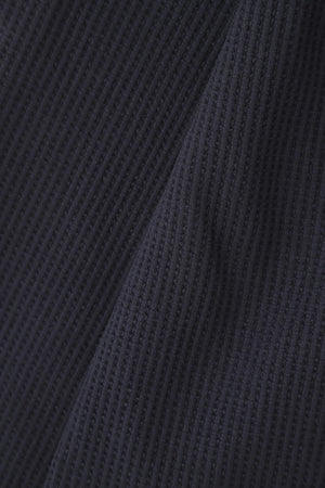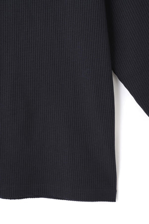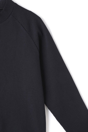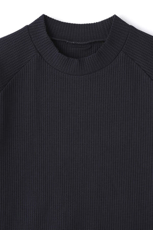 背中の中心にあしらったロゴのテープが目を惹く、ワッフル長袖モックネックカットソー。やさしいくて温かなタッチと、立体的なニュアンスが生まれるワッフル素材を使用した快適なカットソーアイテムです。カジュアルなワッフル生地を使用しながら、こなれ感のあるスッキリしたシルエットで上品さが際立ちます。カットソーならではのリラックス感と、肩周りの動きが快適なラグランの切替しでストレスフリーな着心地が体感できます。ゴルフはもちろんアウトドアやいつものカジュアルにも使いやすい、汎用性の高い飽きの来ないデザインもポイントです。