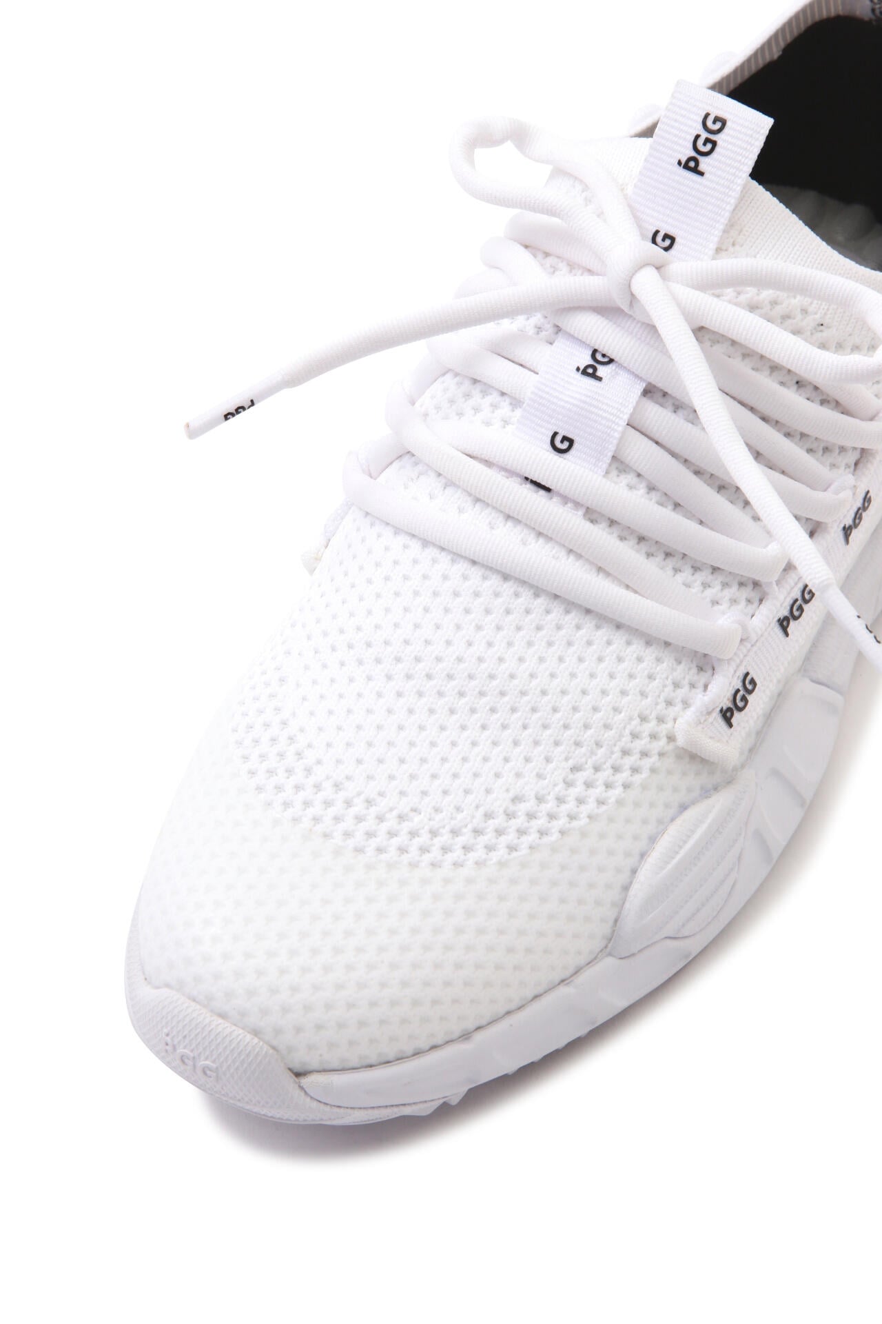 メッシュ構造で通気性を高めたムレにくい快適な履き心地を体感できる、防水ニットローカットスパイクレスシューズ。スリッポン風の快適なフィット感で軽量感を向上して、サッと足を滑らせるだけで簡単に脱ぎ履きできる夏向きのゴルフシューズです。PGGのビッグロゴを配したアウトソールは剛性のしっかりしたブレードが過酷な環境下でも滑りにくく、芝をしっかりグリップして快適なフットワークを実現します。足裏全体で地面を掴み、重心のブレを抑えてインパクト時の蹴る力を伝達もアップさせるなど、足の負担を軽減して理想的な状態を保ってくれます。シューズのフィット感が向上するインソールを入れて、体のバランスもアップさせて足が滑らず踏ん張りがきくためしっかりしたスイングを実現させてくれます。クッション性や安定性など数々の性能を兼ね備えて、夏場のラウンドをより楽しく快適にしてくる涼しげで窮屈感のない履き心地が魅力の一足です。
