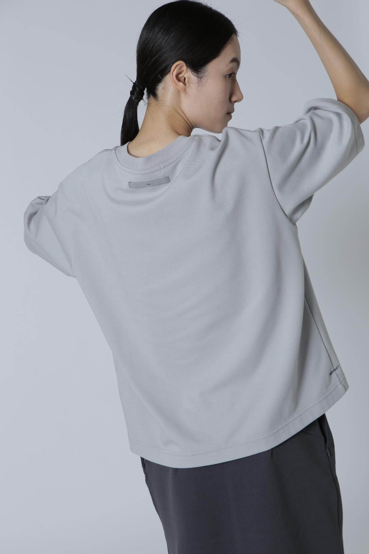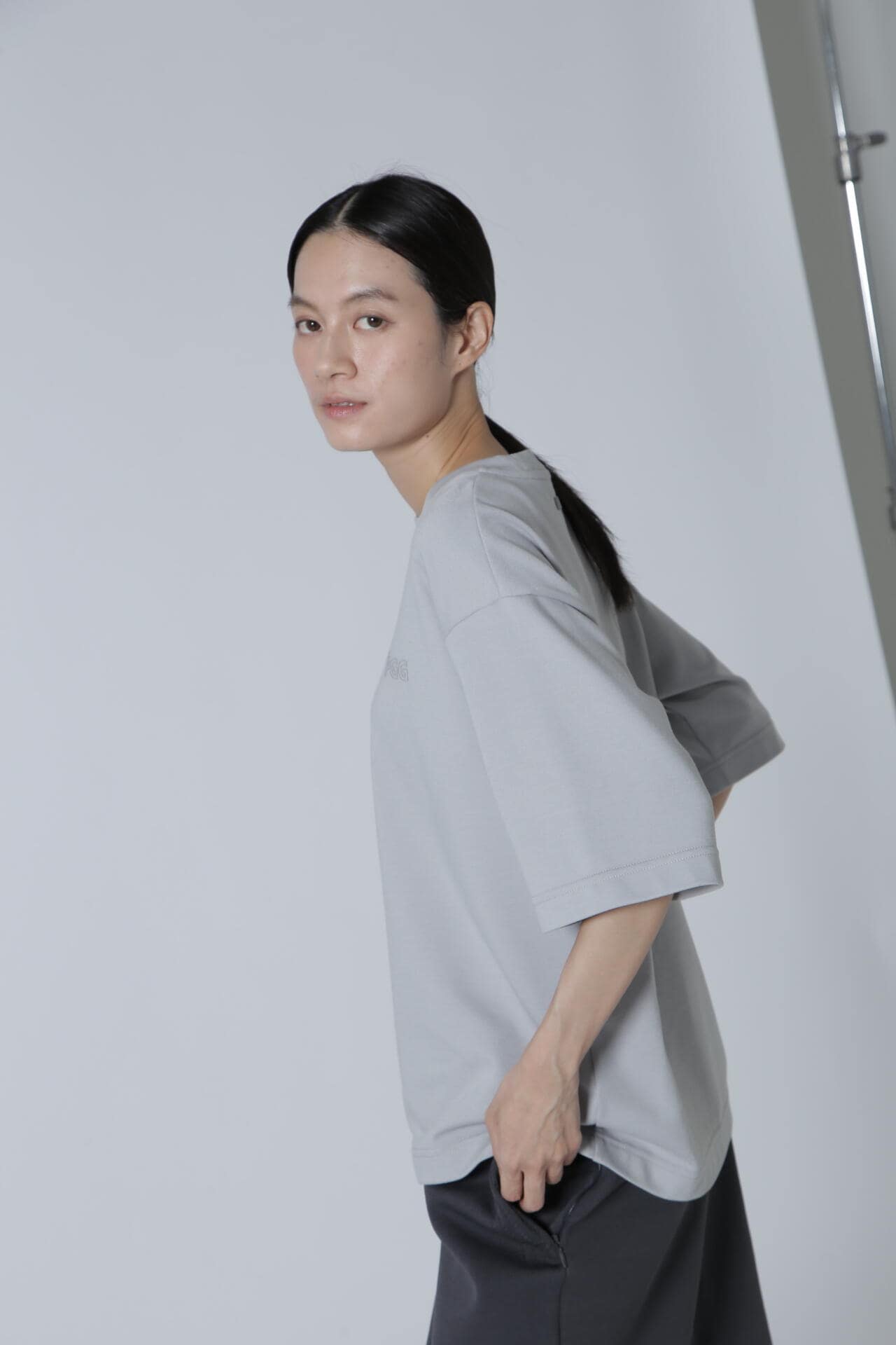 日本の合繊メーカー「ユニチカ」と共同開発したオリジナル素材です。表側と裏側に2種類のタイプの糸を使用して編み上げました。表側にはリサイクル糸でもある《エコパルパー》糸(芯に再生ポリエステルを使用し外側に綿を使用した複重層糸)を使用しています。