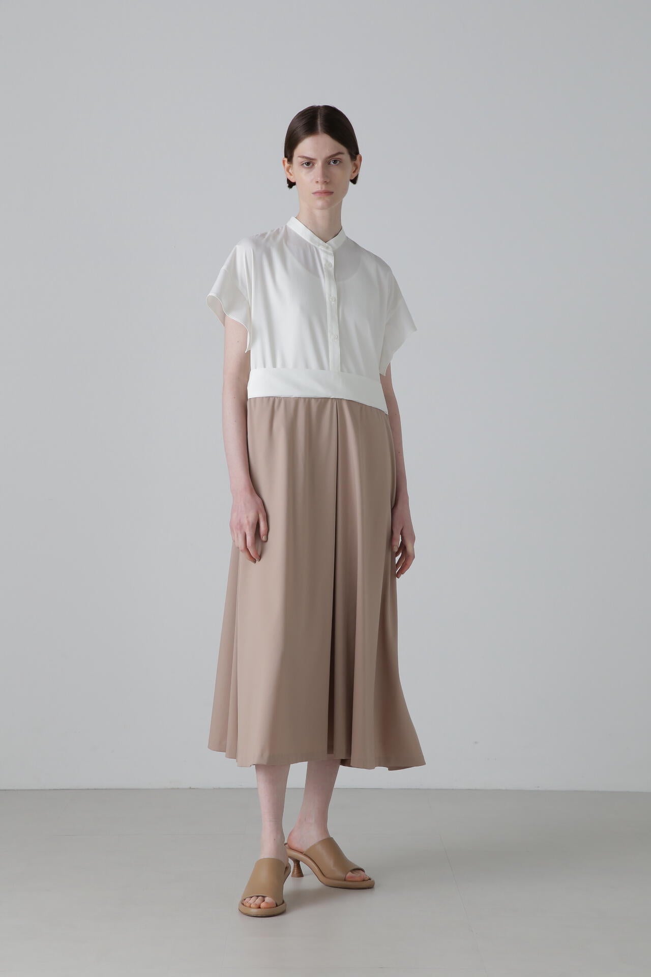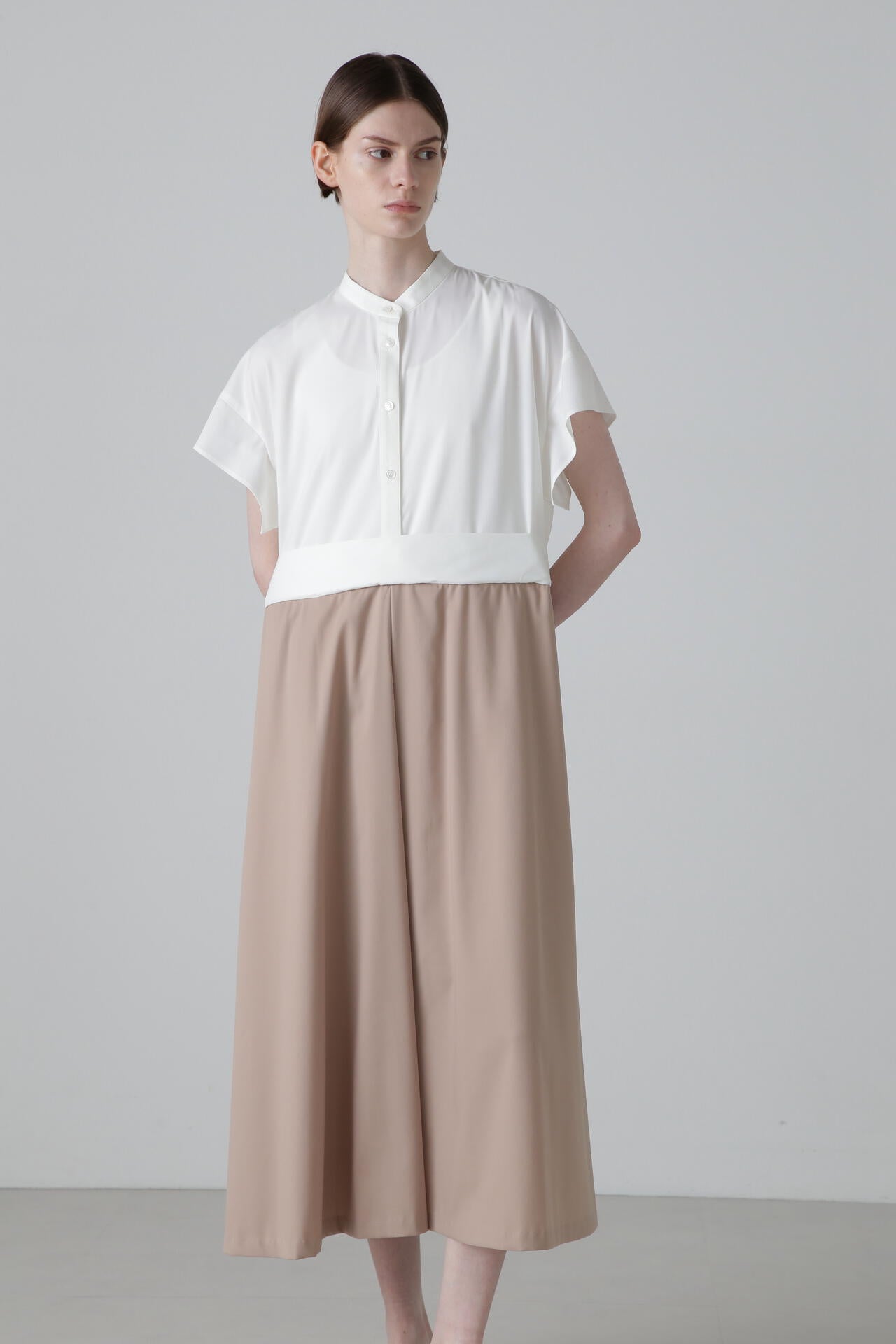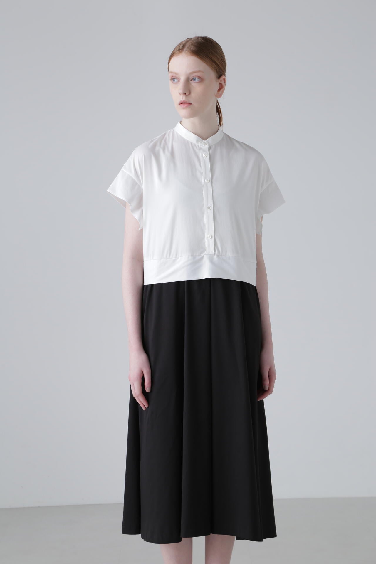 バンドカラーのシャツとスカートをコーディネートした様な軽やかなデザインドレスです。