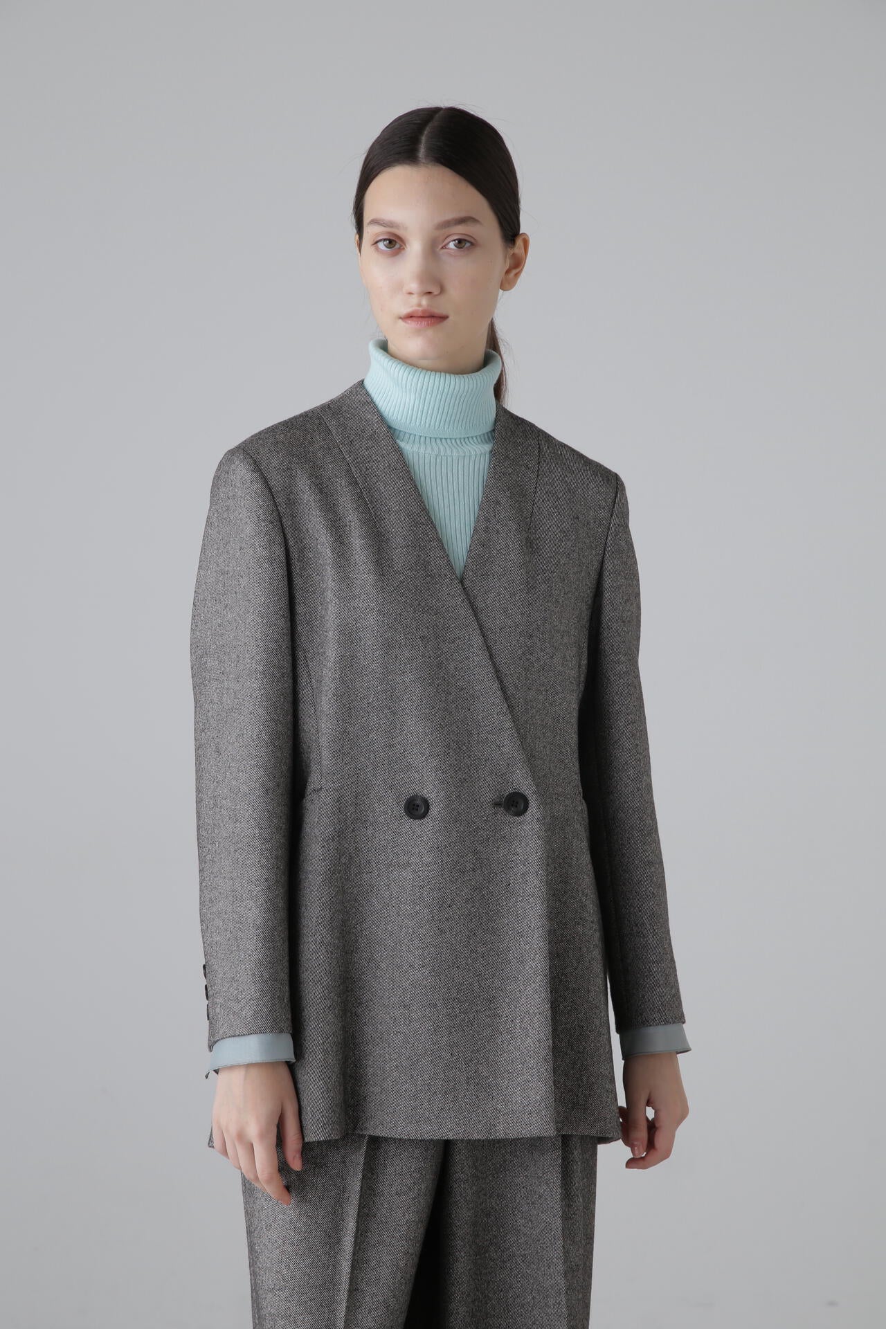 温かみのあるウールと光沢がありしなやかなレーヨンを交織させた、薄手ツイードツイル素材で仕立てました。