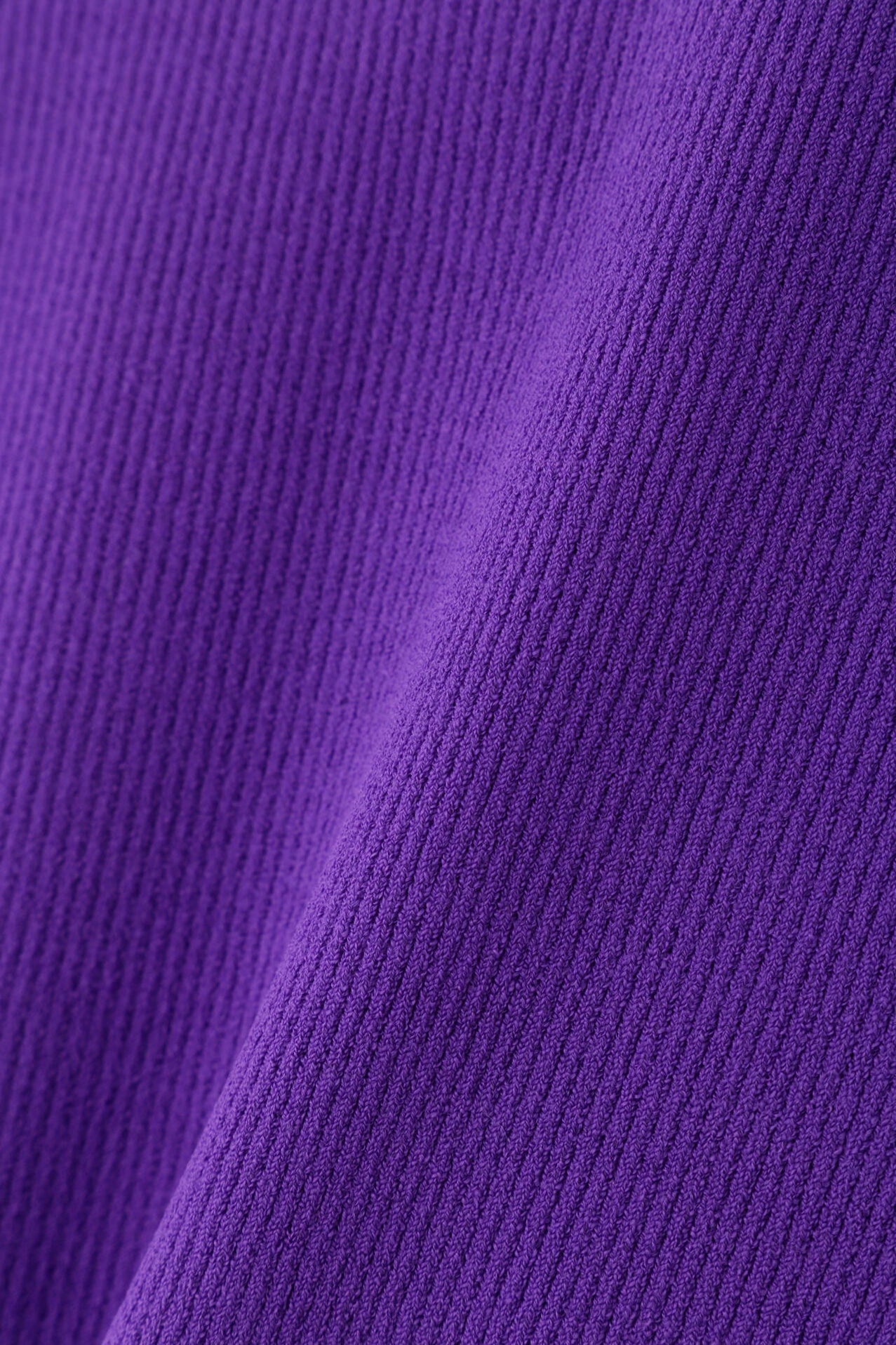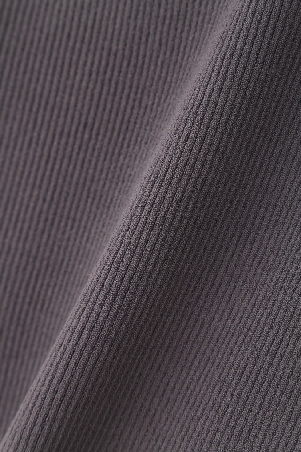 レーヨンとポリエステルの混紡糸。PBTポリエステルの耐久性とストレッチ性がレーヨンのドレープ感を抑え、控えめな光沢感をのこしています。