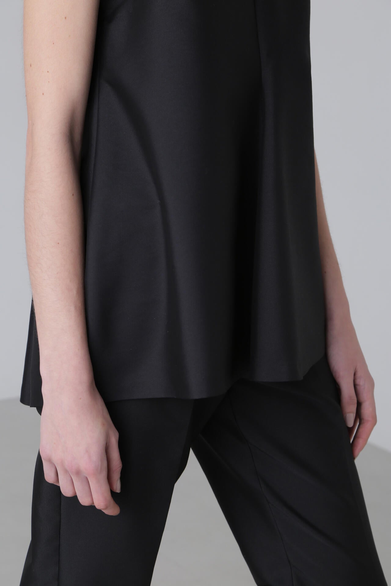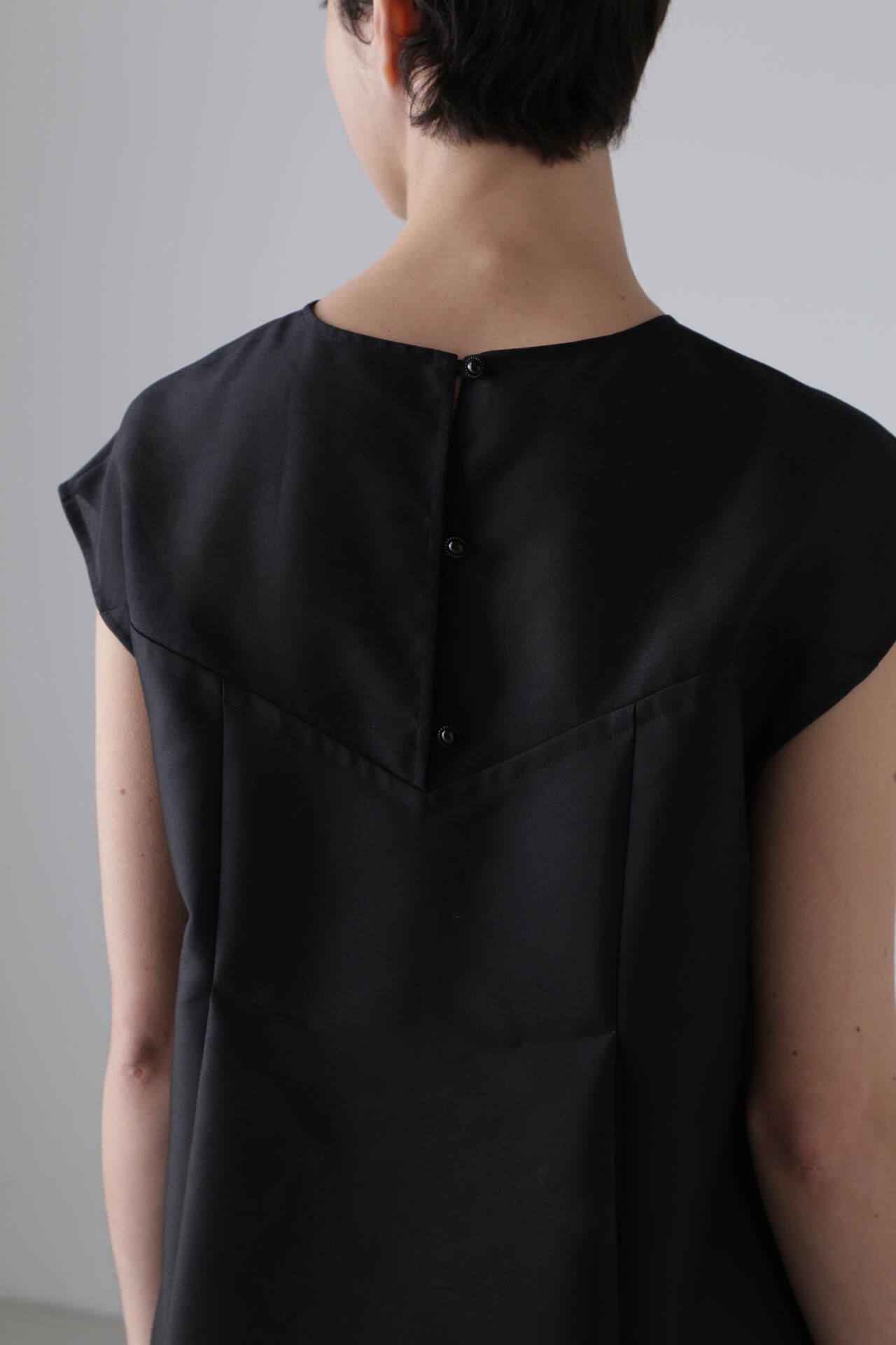 素材のハリを活かし、丸いタックで裾にむかって広がる華やかなシルエットを作っています。
