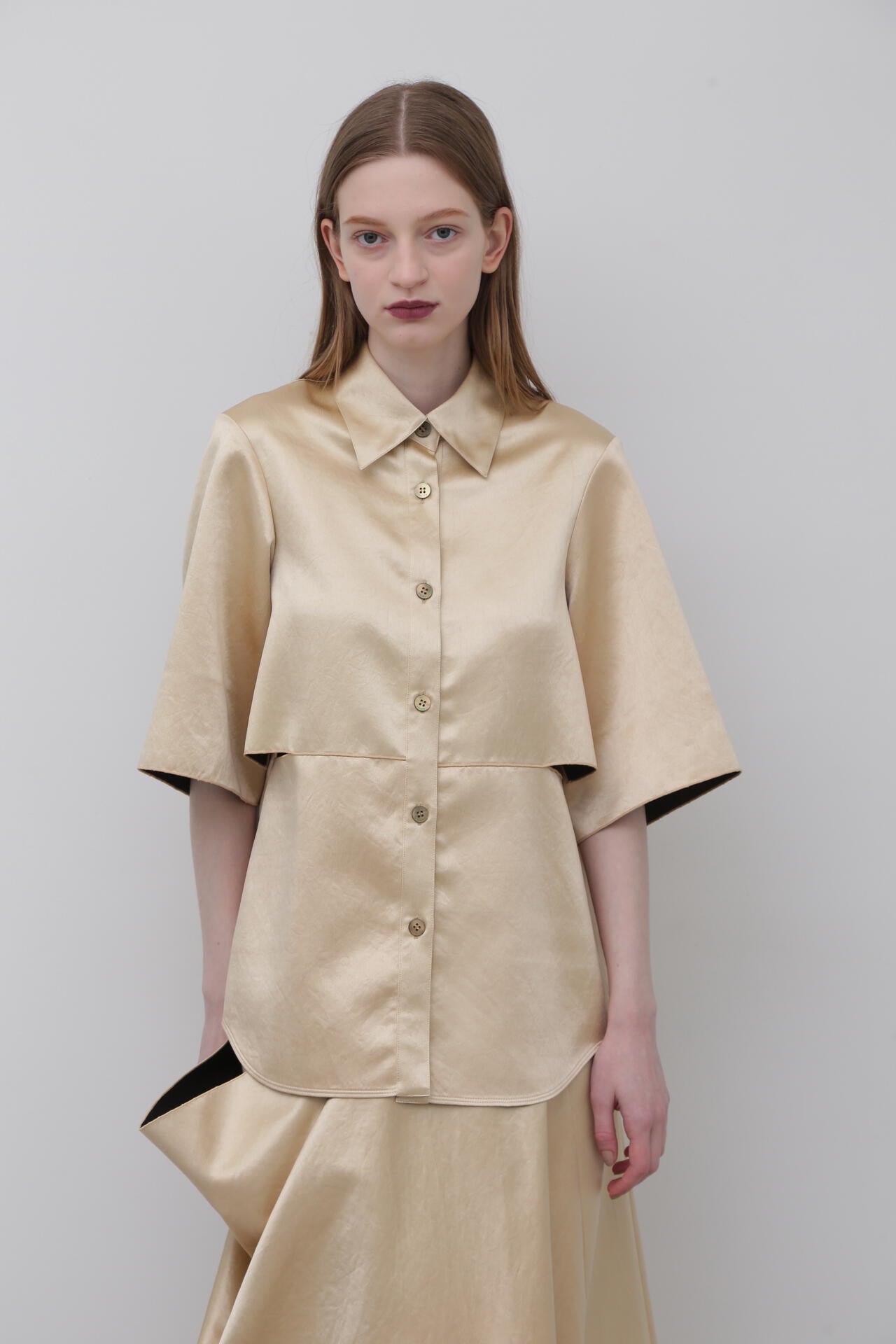 アセテート特有の光沢感とドレープ性が特徴なサテン素材で仕立てました。