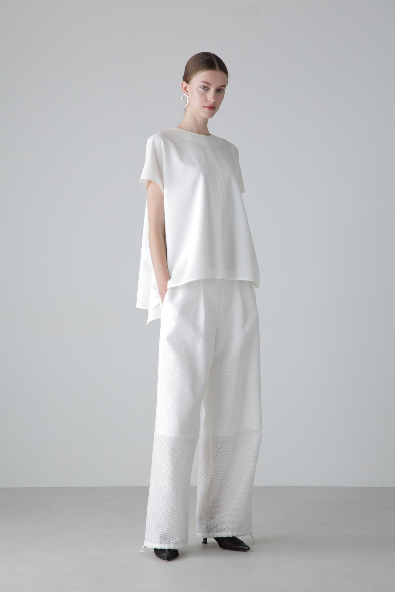 ホワイトカラーは、適度な反発性とポリウレタンの伸縮性が特徴な、ドレープのある素材で仕立てました。