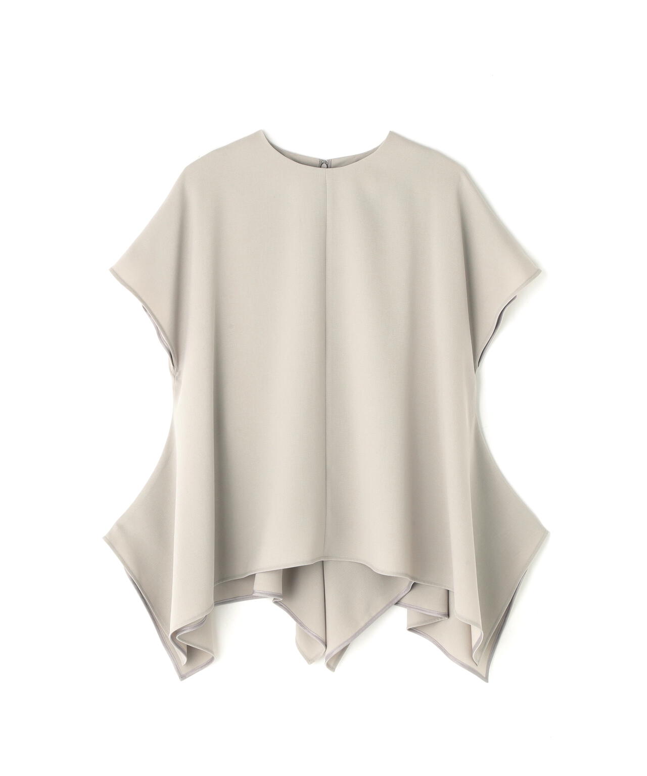 身頃の切りかえパーツが裾に向けてカーブし、独特なシルエットを出したデザインブラウスになります。