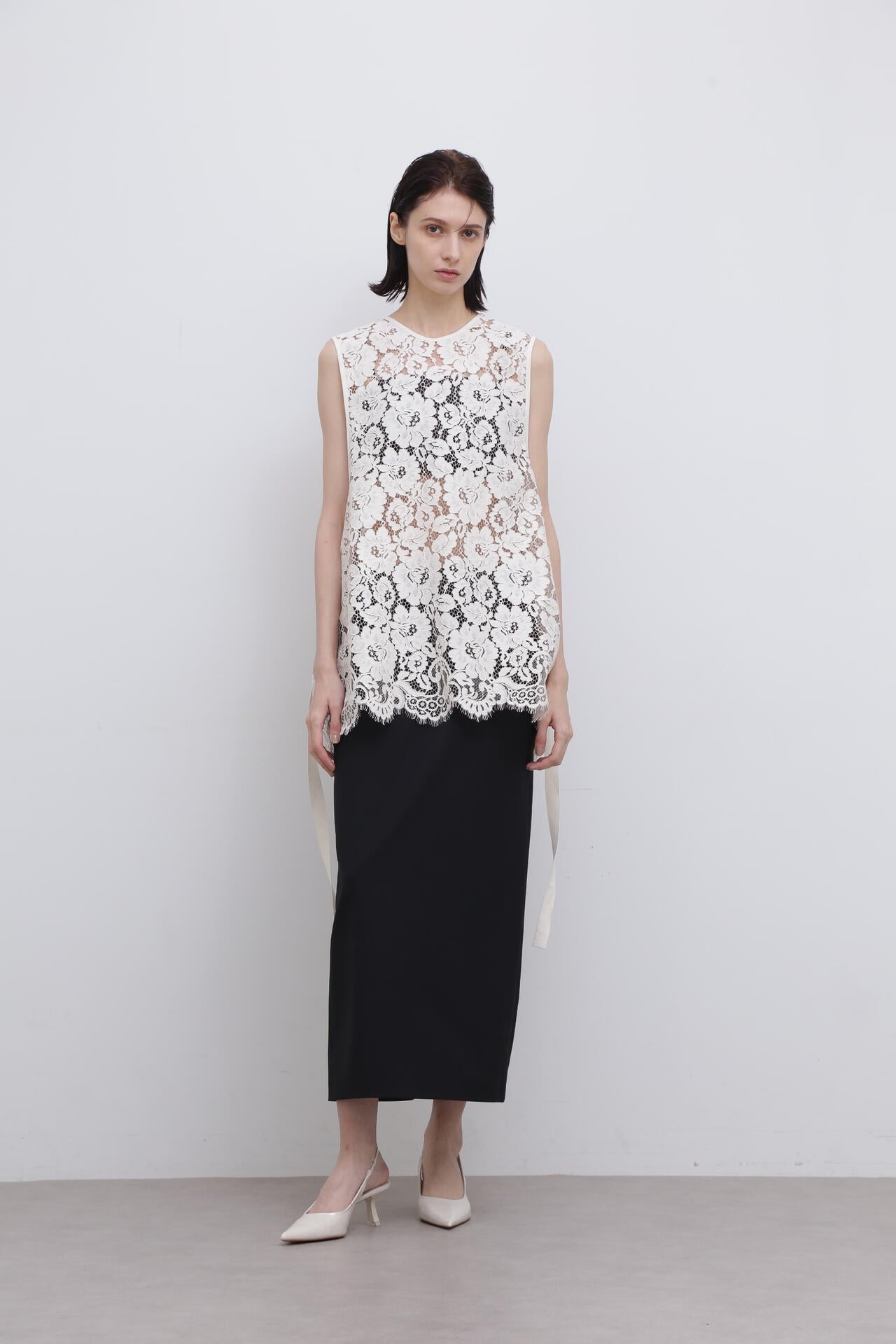 滑らかで光沢感のある生地の風合いに、ウールながらシルクを思わせる独特な反発感とハリ感を持たせたスカート。