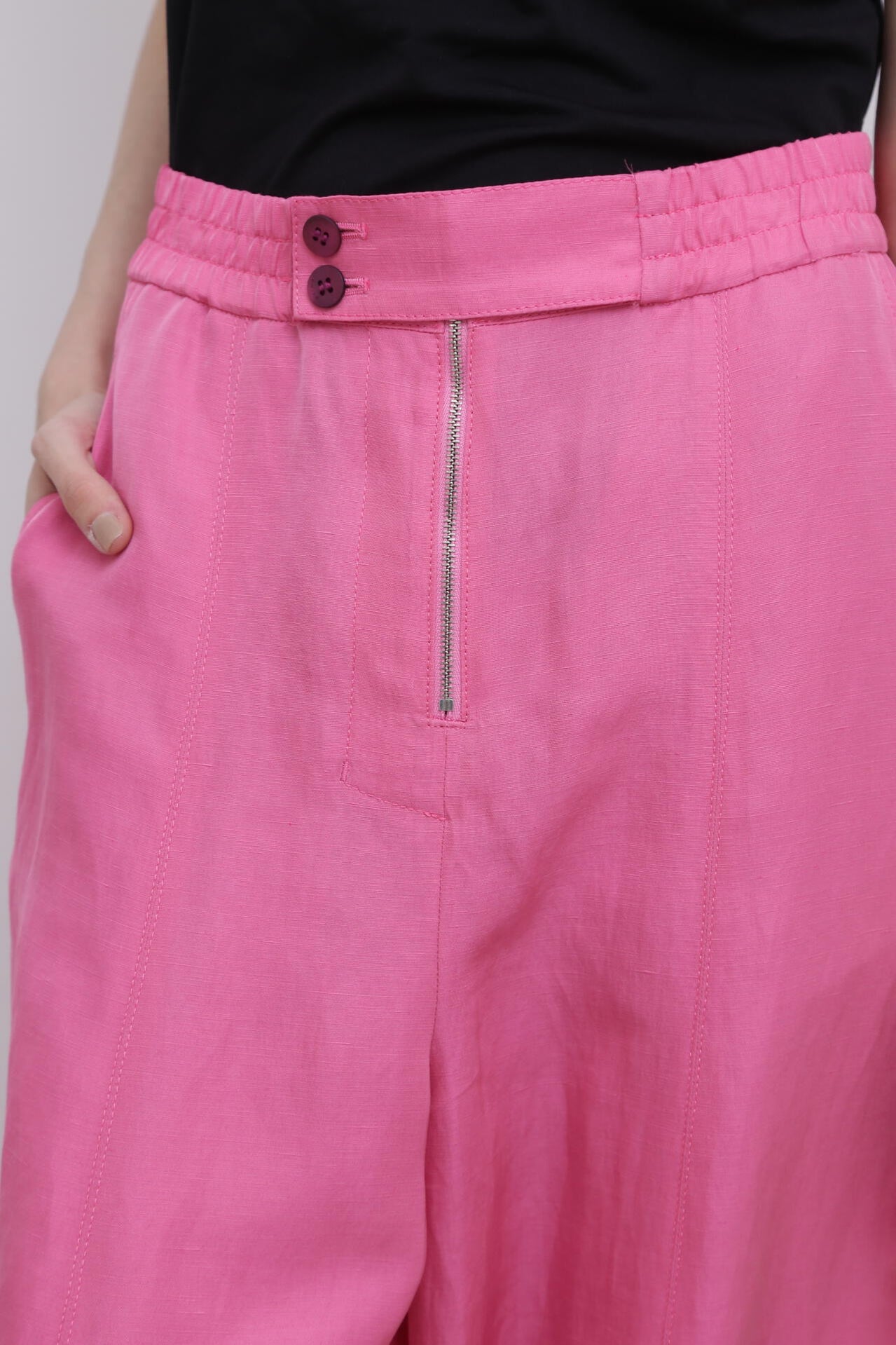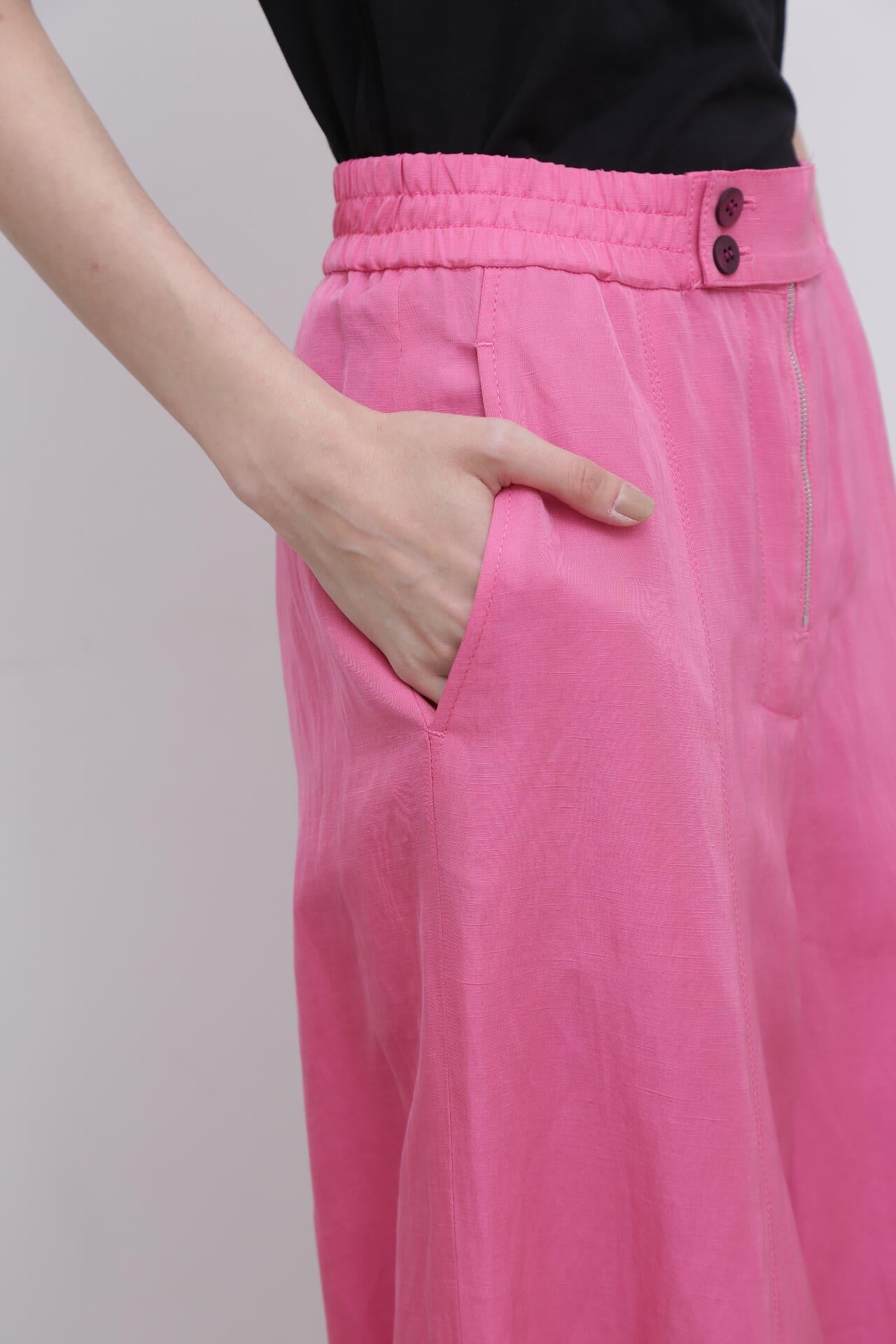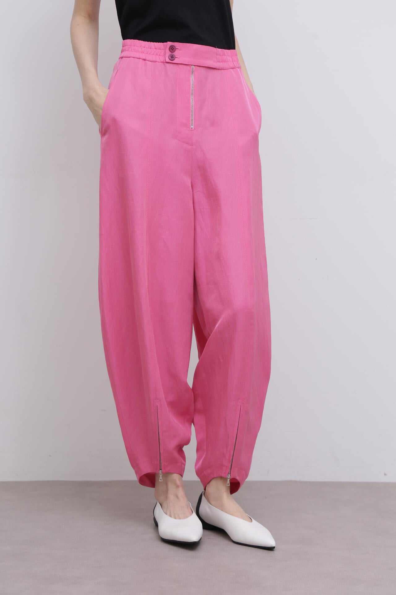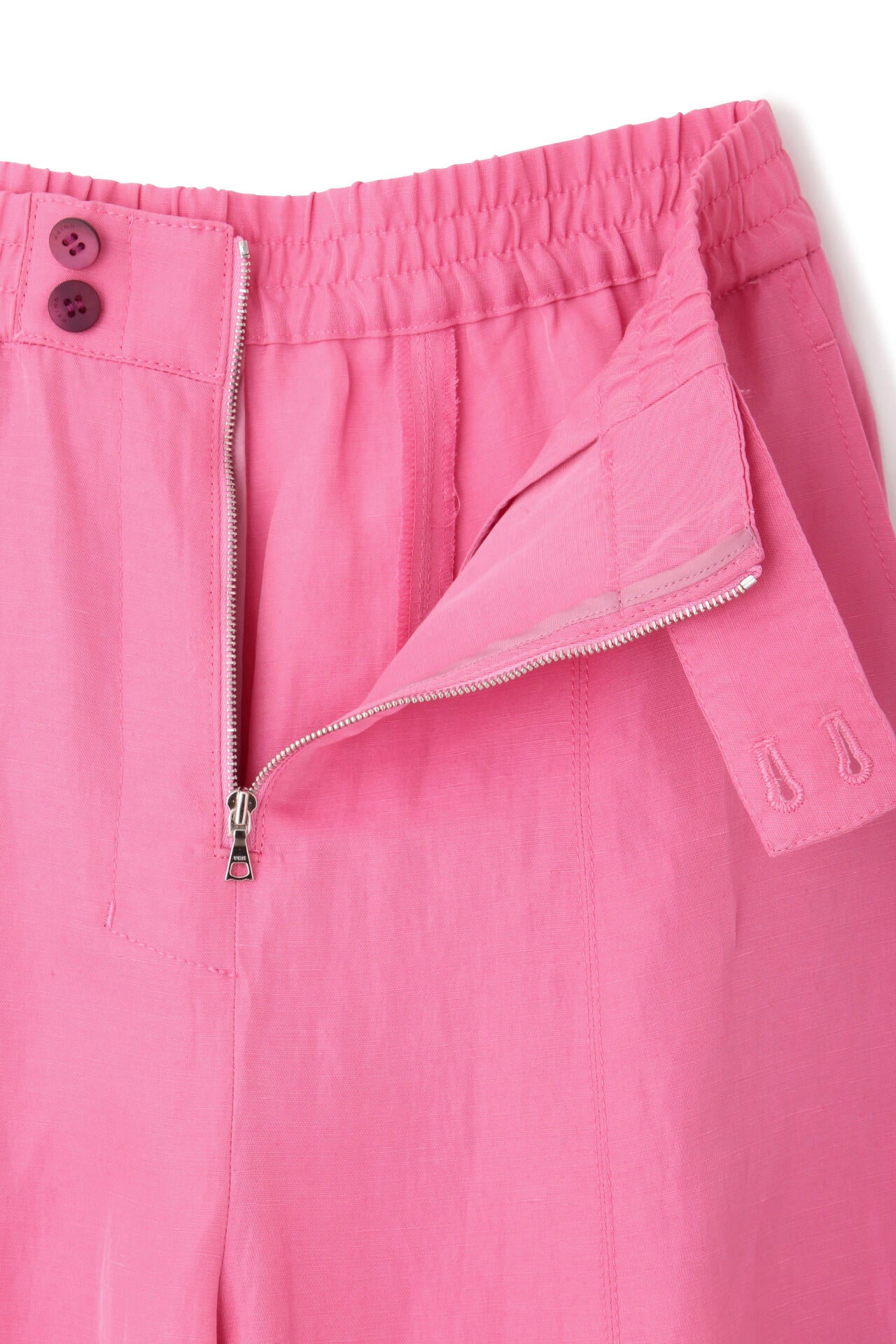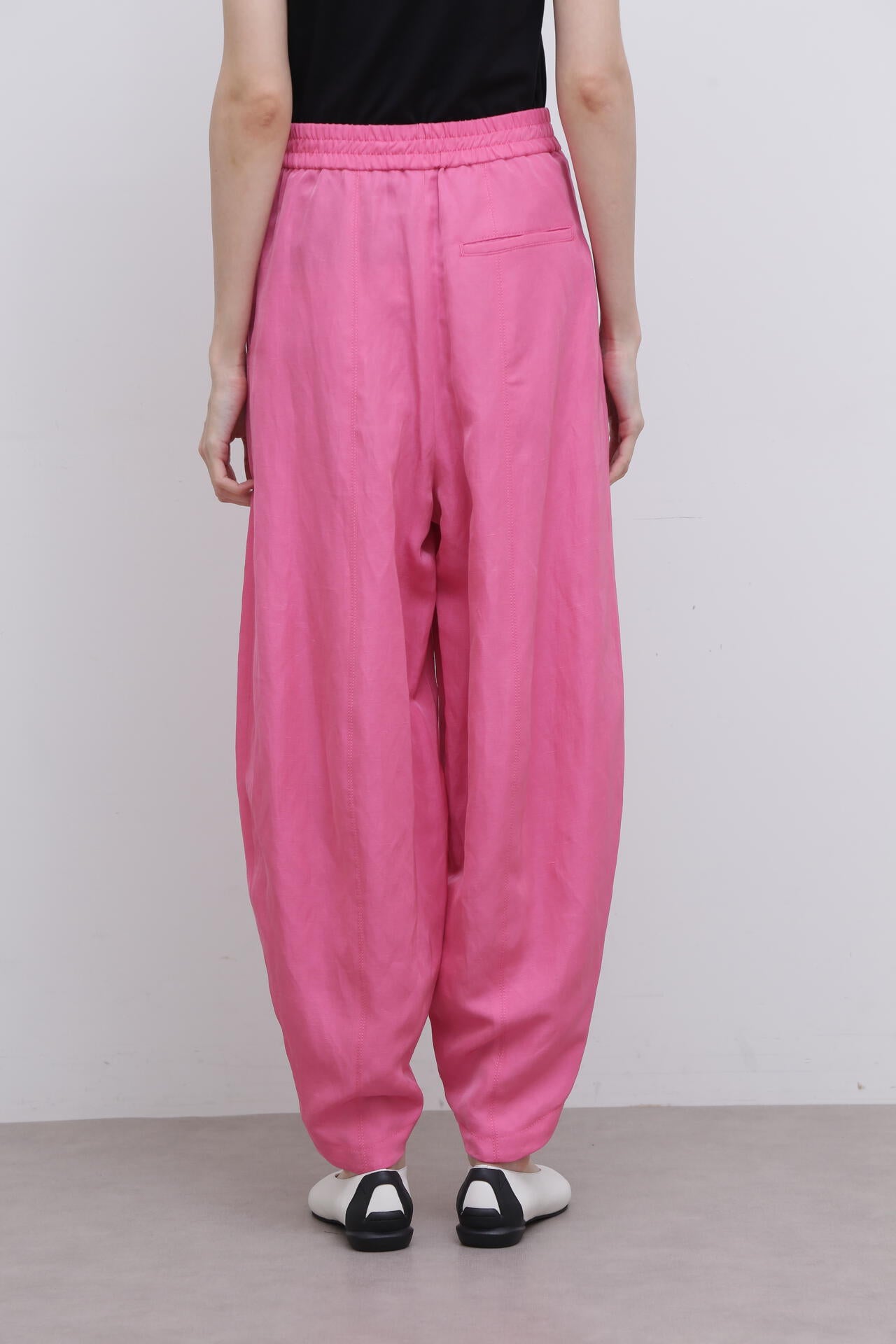 トリアセテートの上品な光沢と落ち感、リネンのナチュラルな風合いが特徴の素材でできたパンツです。