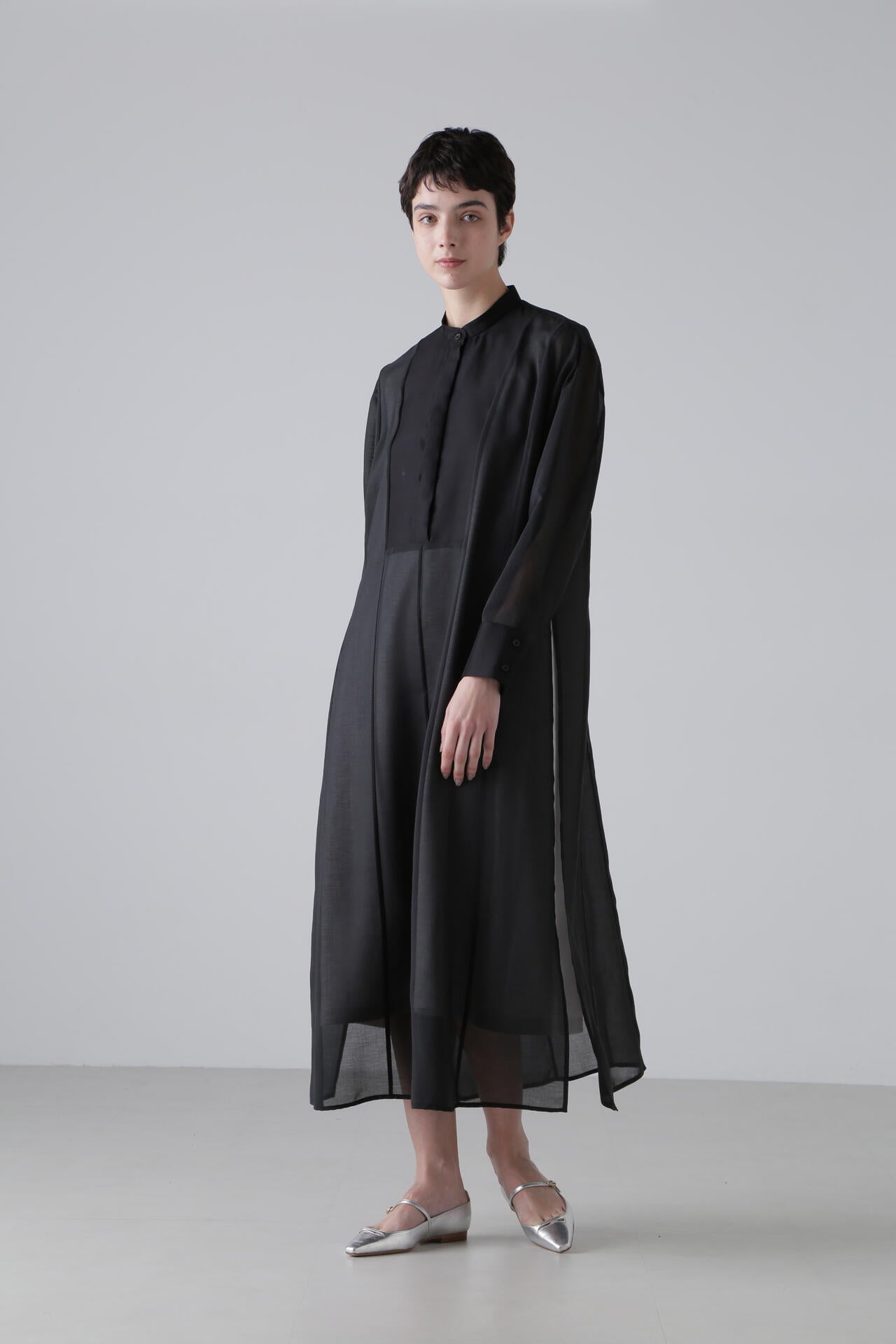 程良い透け感のある、ドライタッチなオーガン素材を使用したシャツドレスになります。