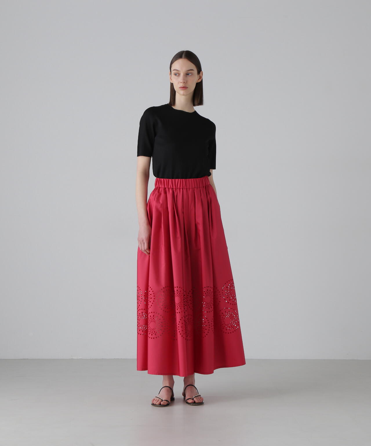 上品なきらめきが華やか。程よく透け感のあるニットトップスです。