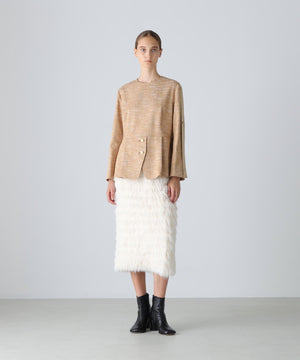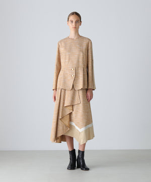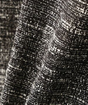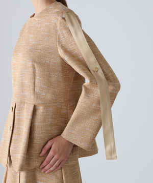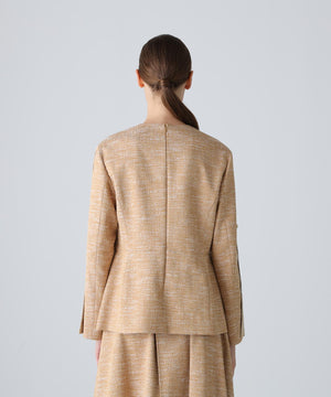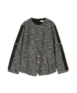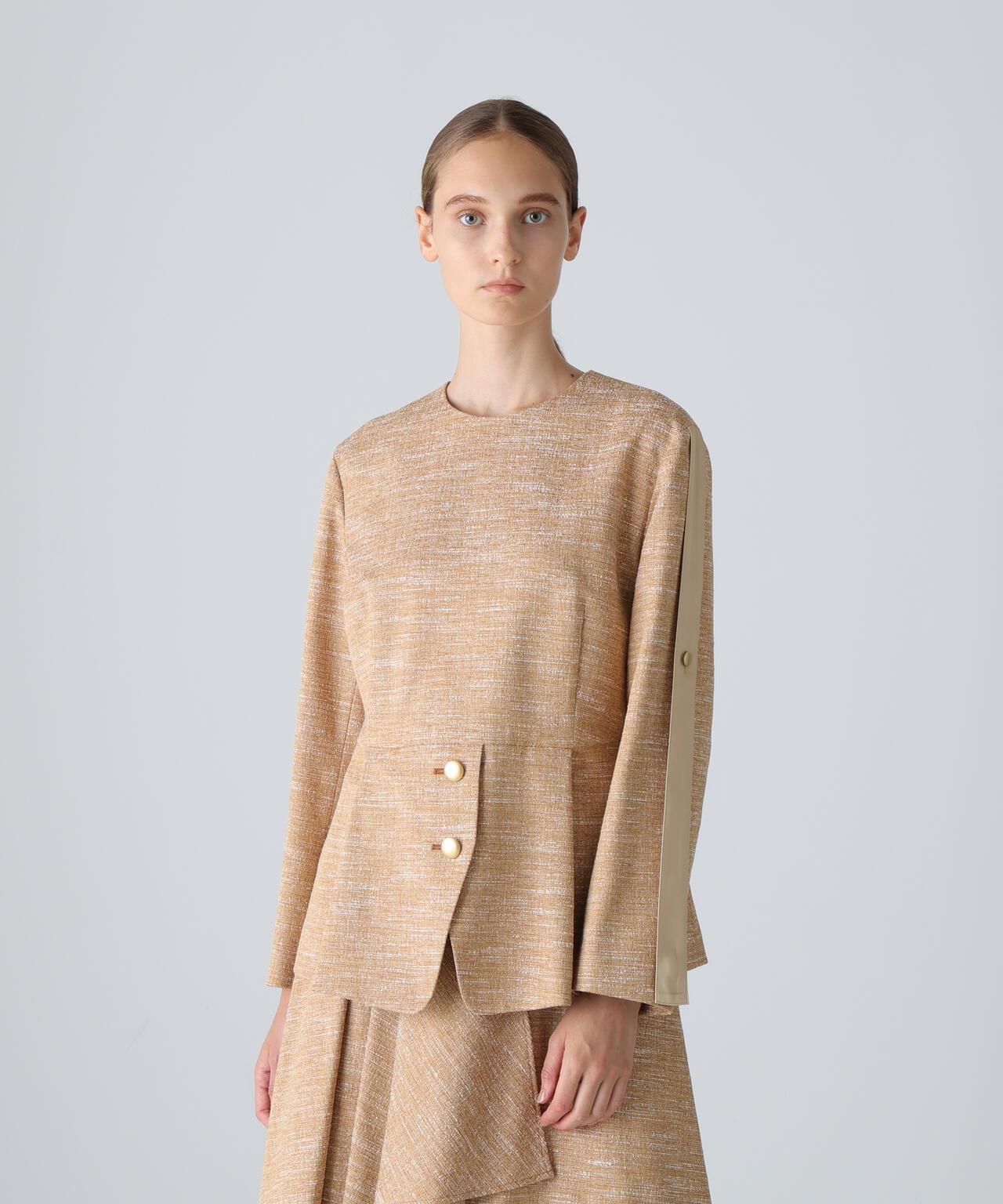 白いスラブ糸が入ったツイード素材のペプラムブラウス。