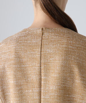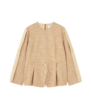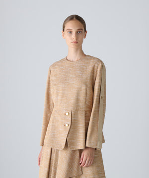 ライトに織り上げたスラブツイード素材のペプラムブラウス