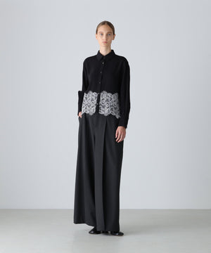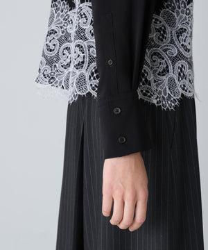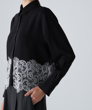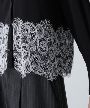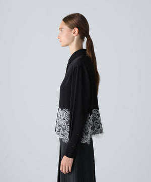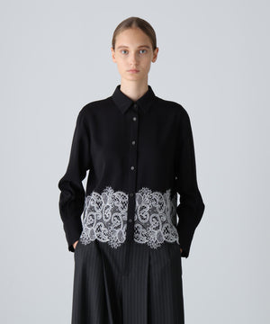 合繊シャツの裾にレースを配色で合わせました。
