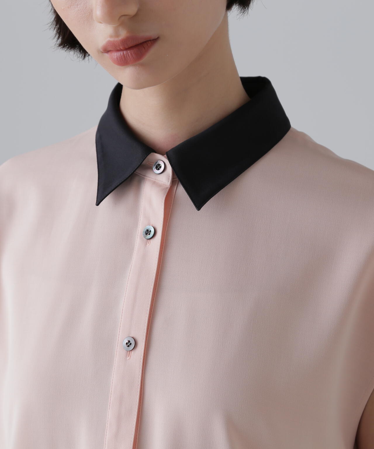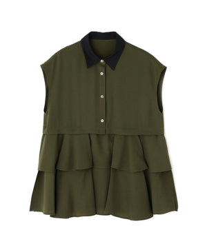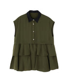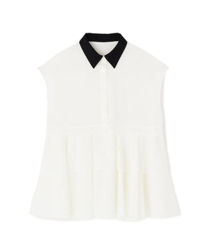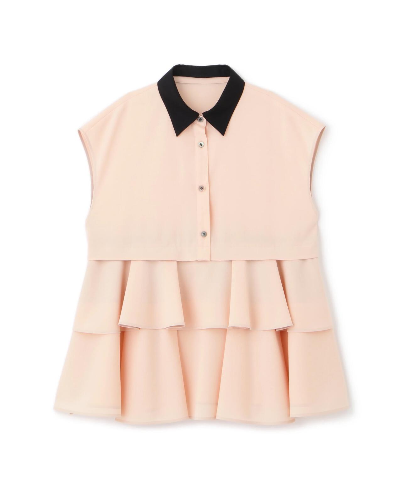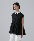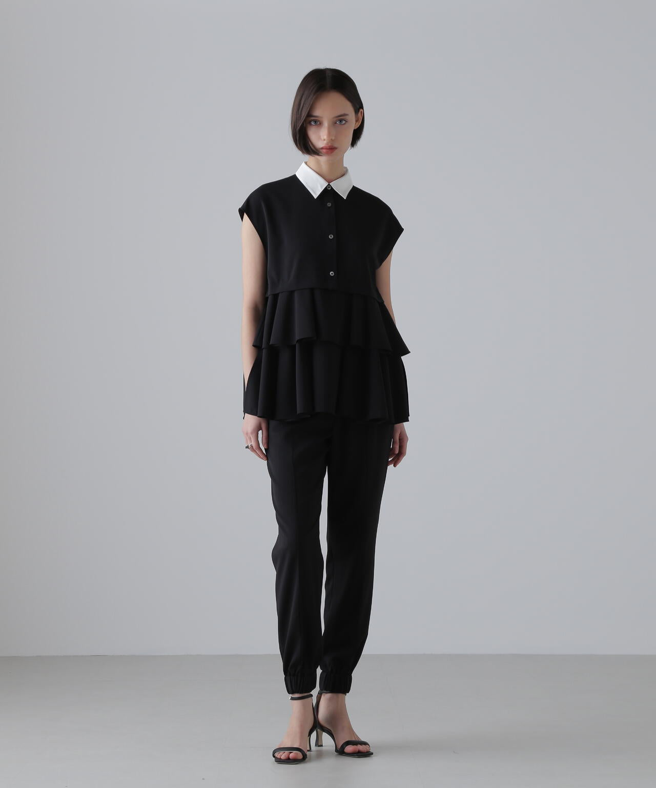 身頃に入ったティアードペプラムがデザインポイント。配色の襟は取り外し可能で様々なスタイリングを楽しめる仕様に。