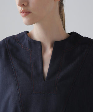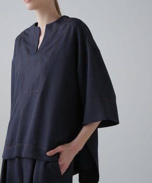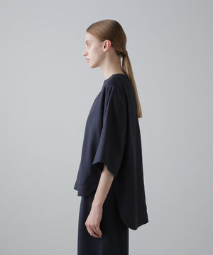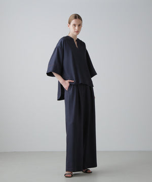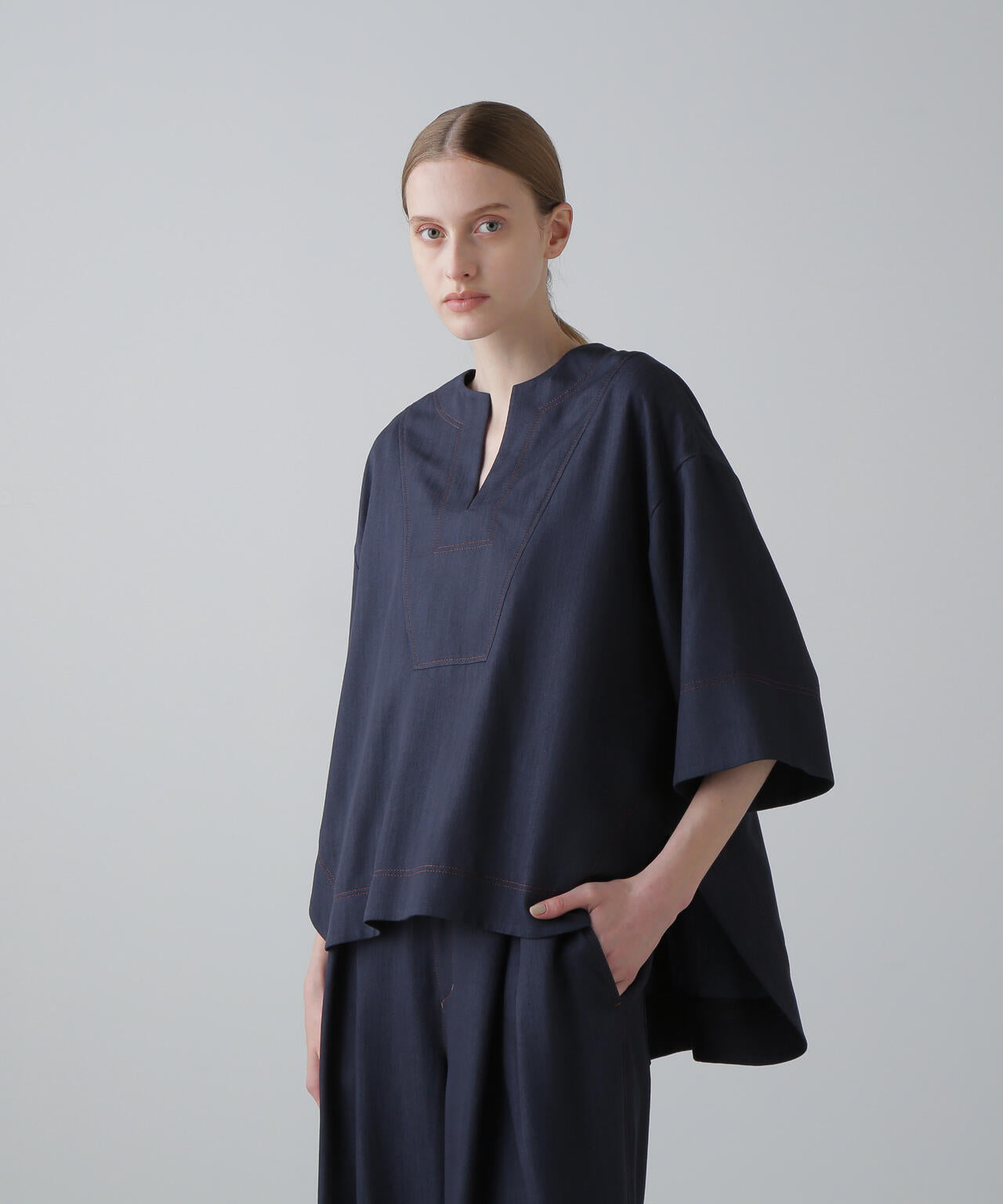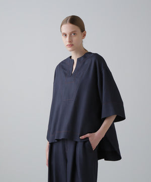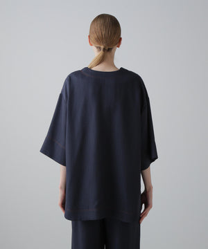 圣糸にドレープ感と表情のあるレーヨンスラブ糸を使用し、しなやかさと艶感が特徴なツイル素材で仕立てました。