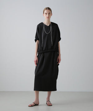 柔らかくドレープ性に富んだサテン素材で、通常のサテンよりも表面に畝感を出しています。