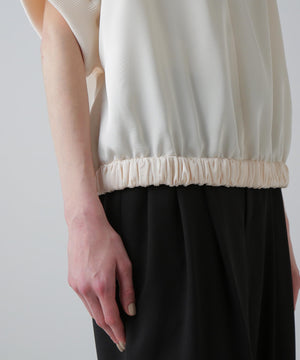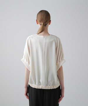 裾にギャザーの入ったゴムが入っているので、体に張り付きすぎずデイリーに着用できるアイテムに。
