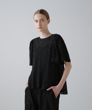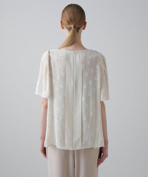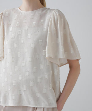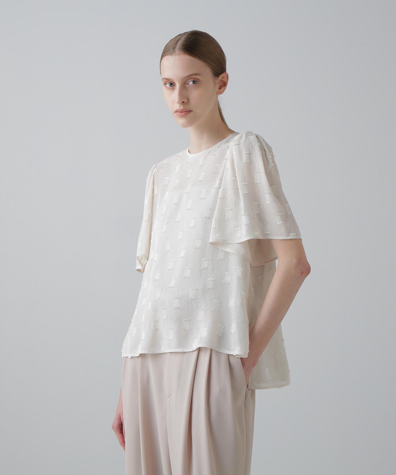 後ろファスナピッタリな上質ジャガード素材のブラウスです。