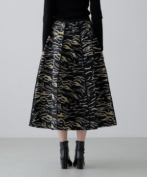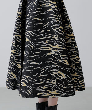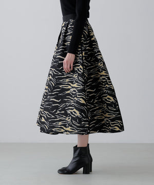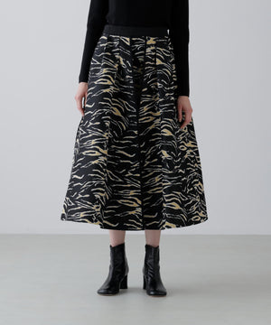 アーカイブのゼブラジャカードの素材を使用したエクスクルーシブなタックフレアスカートです。