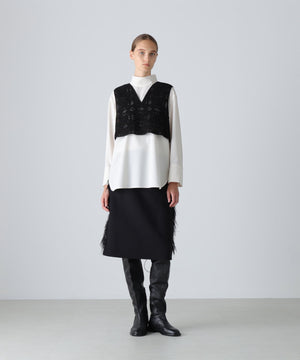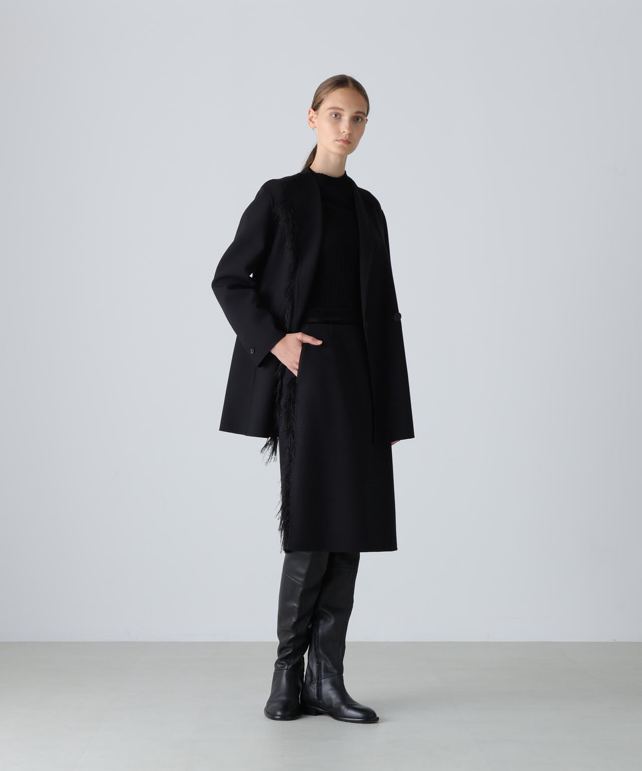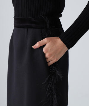梳毛見えのスッキリとした表面感のダブルフェイス素材を使用したスカートです。