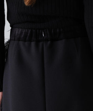 (表生地)ポリエステル 40% 毛 32% 複合繊維 (ポリエステル) 28%(ウエスト部分)トリアセテート 68% ポリエステル 32%(裏生地)キュプラ 100%