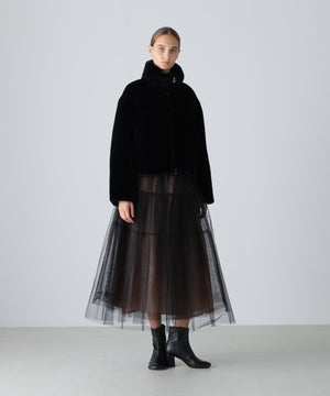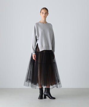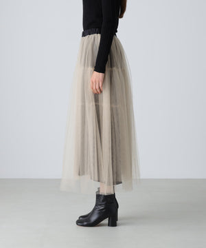 大人の女性に向けた、甘すぎず洗練された印象のチュールスカート。