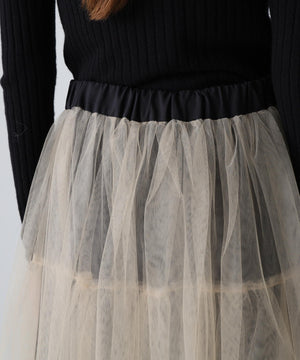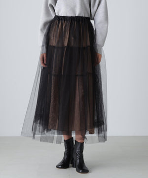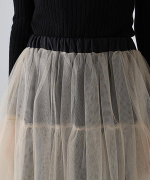 配色の重なりがニュアンスを演出するブライトチュールレイヤースカート