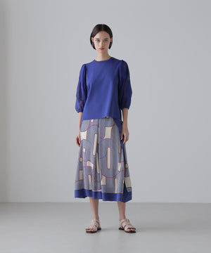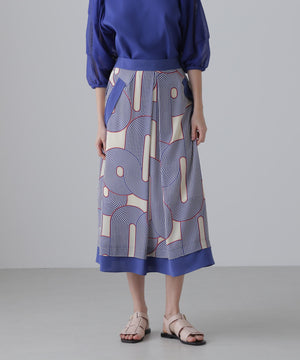 ミッドセンチュリーな幾何柄プリントを無地でフレーミングしたスカートです。