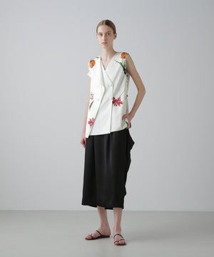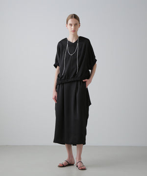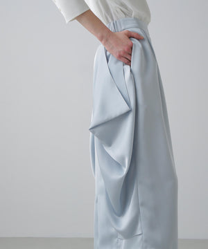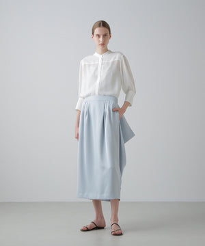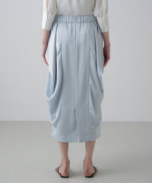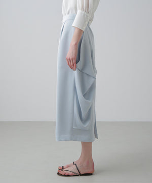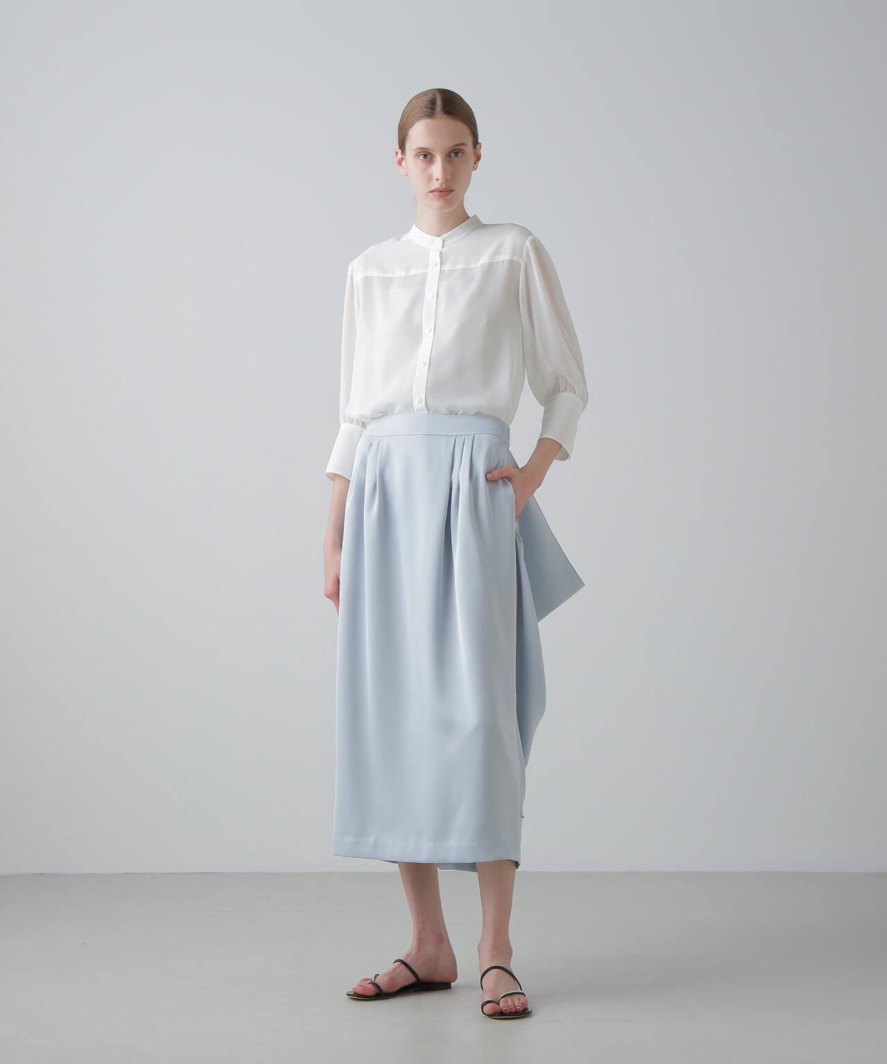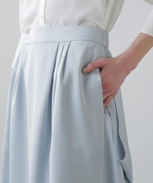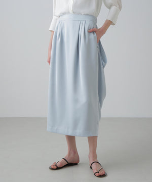 タックの入ったストレートスカートを軸に、サイドにドレープのパーツを施しました。