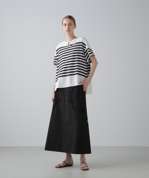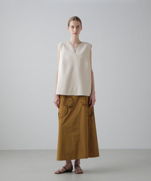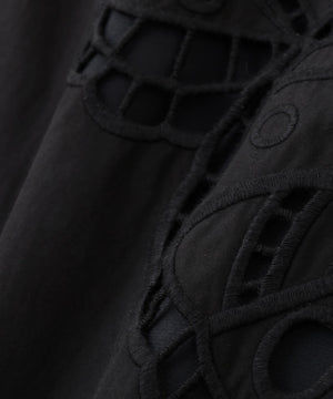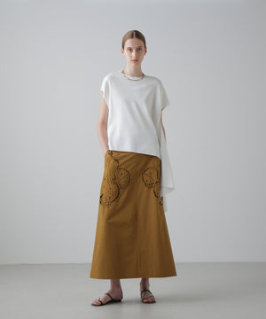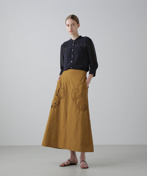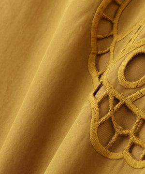 ポリエステルのスッキリとした風合いに、コットンの膨らみとソフトさをミックスした、高密度なタフタ素材をベースに、モチーフを特殊な刺繍加工で施しました。