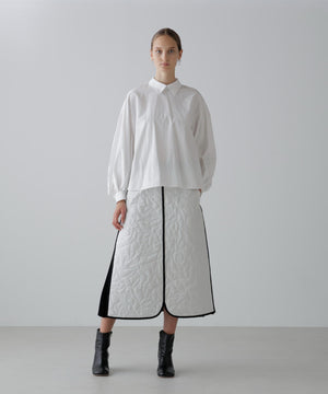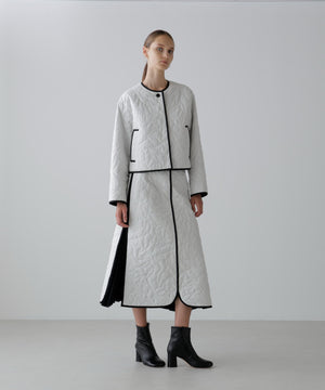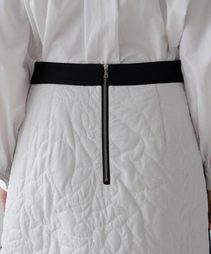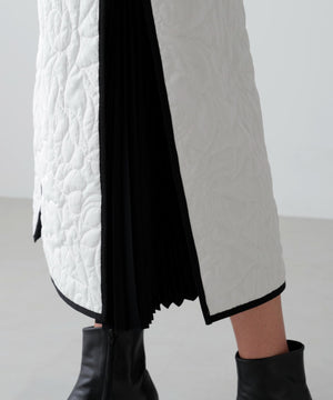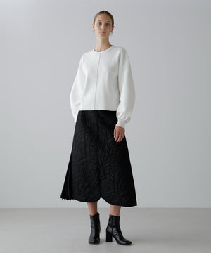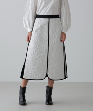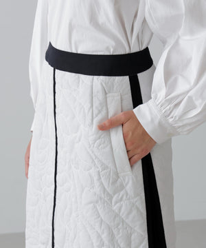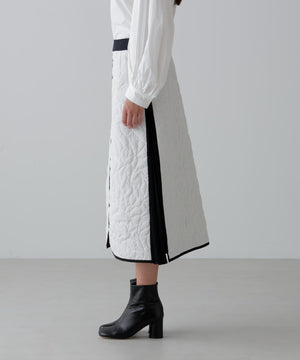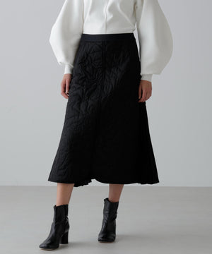 オリジナル柄をステッチで描いたキルティングのAラインスカート。