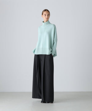 タックを大きく取りバレルのようなシルエットのパンツ。