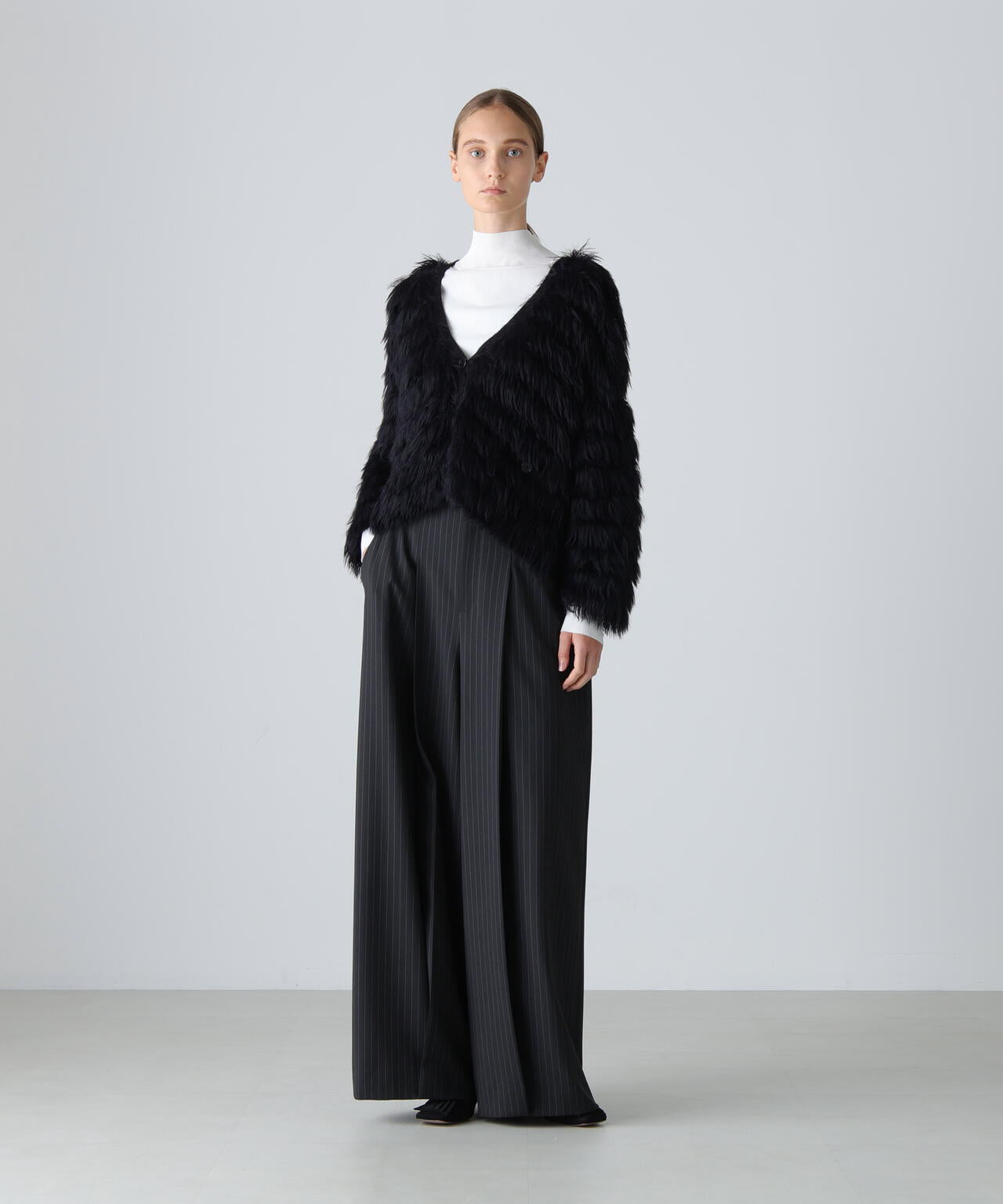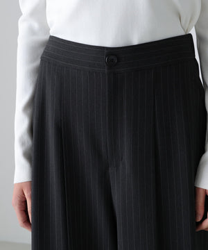 タックでしっかりとシルエットを出し、スッキリとしたストライプ素材で仕上げました。