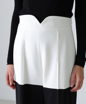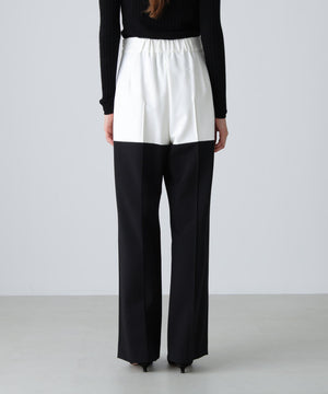 大胆なバイカラー使いが目を惹くダブルクロスパンツ