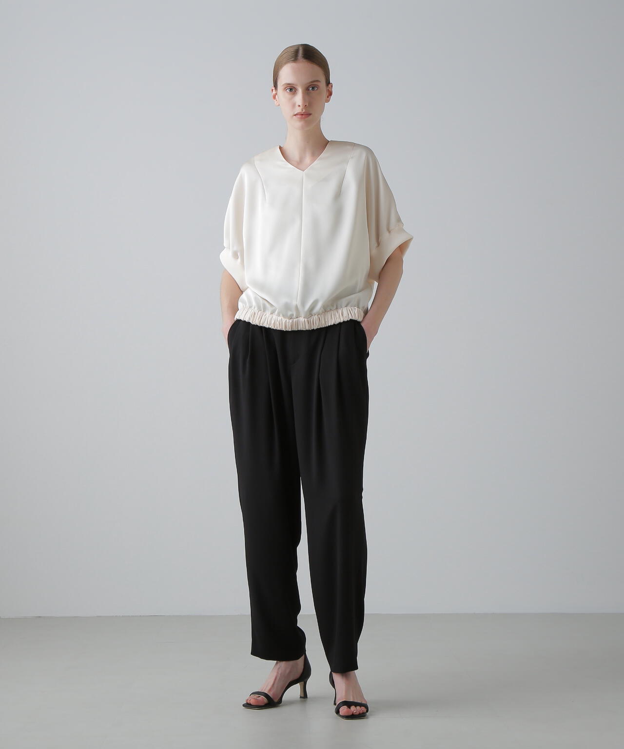 シーンを選ばず着まわしやすい、ライトジョーゼット素材の万能パンツ