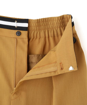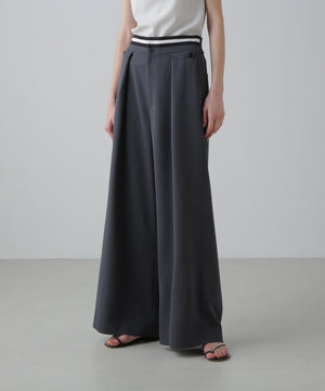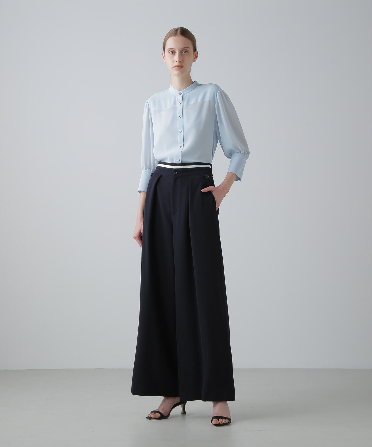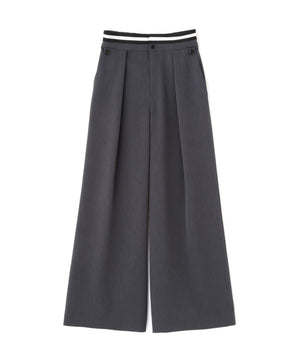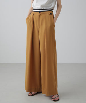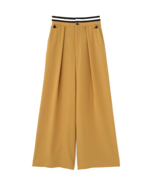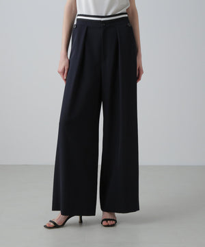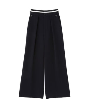 程よい太さのワイドパンツでマリンパンツのようなディテールが特徴です。ウエスト部分がボーダー柄の切り替えデザインになっています。