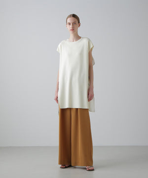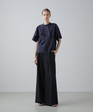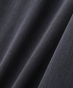 タテ糸にポリエステルの強撚糸とレーヨンの強撚糸を使い、濃淡に染めることで生地に特有の表情を持たせた、ドレープ性にとんださらりとドライなツイル素材で仕立てました。