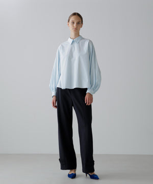 ウールのギャバ素材で出来たすっきりとした印象のデザインパンツです。