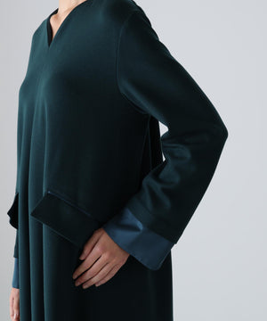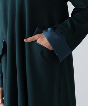 袖口、後ろタック奥にサテンの素材をコンビにすることでエレガントな印象に仕上げました。