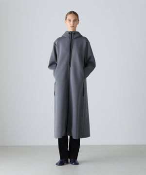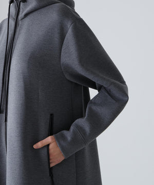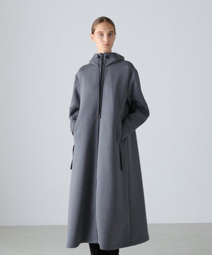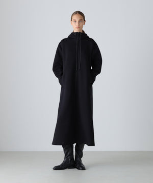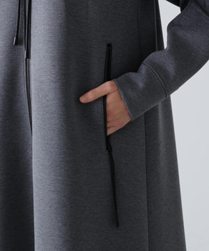 軽いダンボールカットソー素材で仕上げられたフーディードレスです。