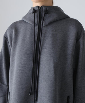 ジャージーな素材で仕立てたエアダンボールフーディードレス